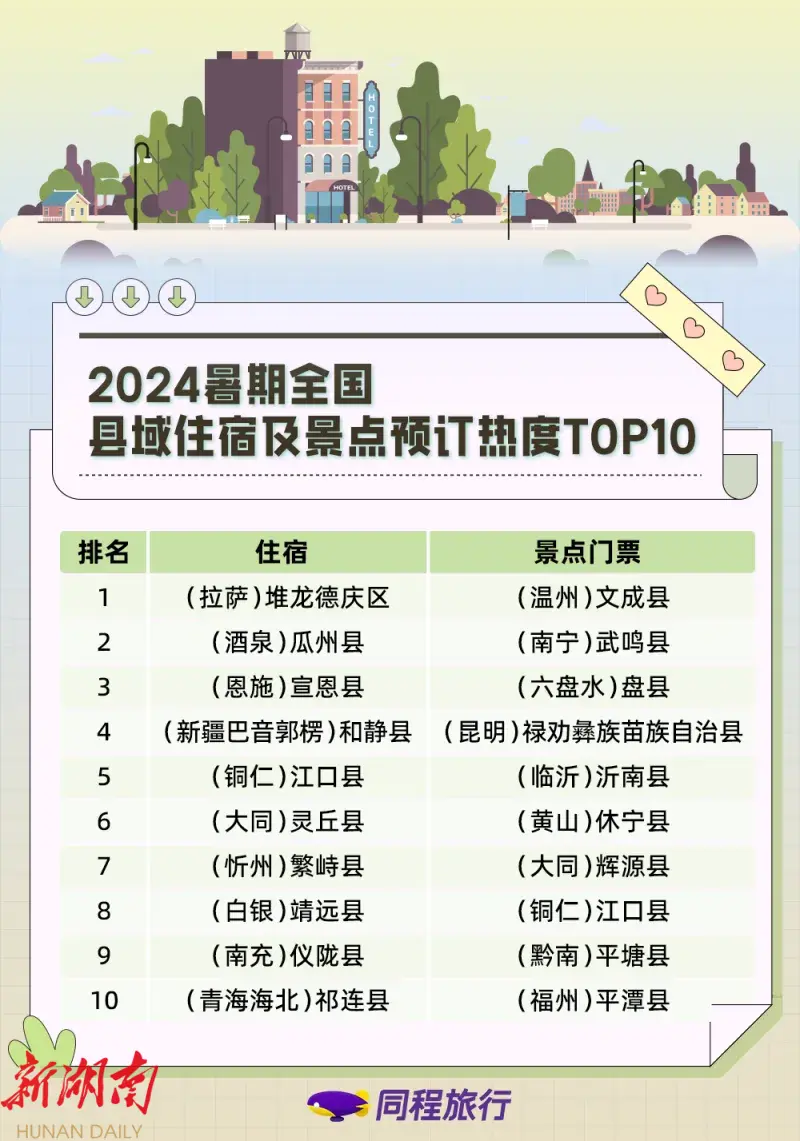 2024暑期全国县域住宿及景点预订热度Top10榜单