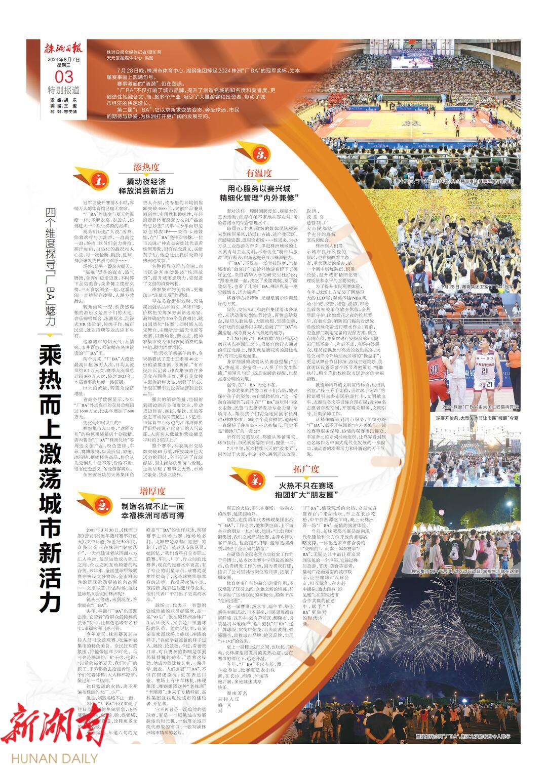 从精细管理到用心服务,组织办好“厂BA”,离不开株洲的“内外兼修”,一流的赛事服务保障、热情的观赛市民群众、丰富多元的系列活动组织,让外界看到制造名城作为中国式现代化发展的一扇窗口,涌动着的澎湃活力和升腾起的万千气象。