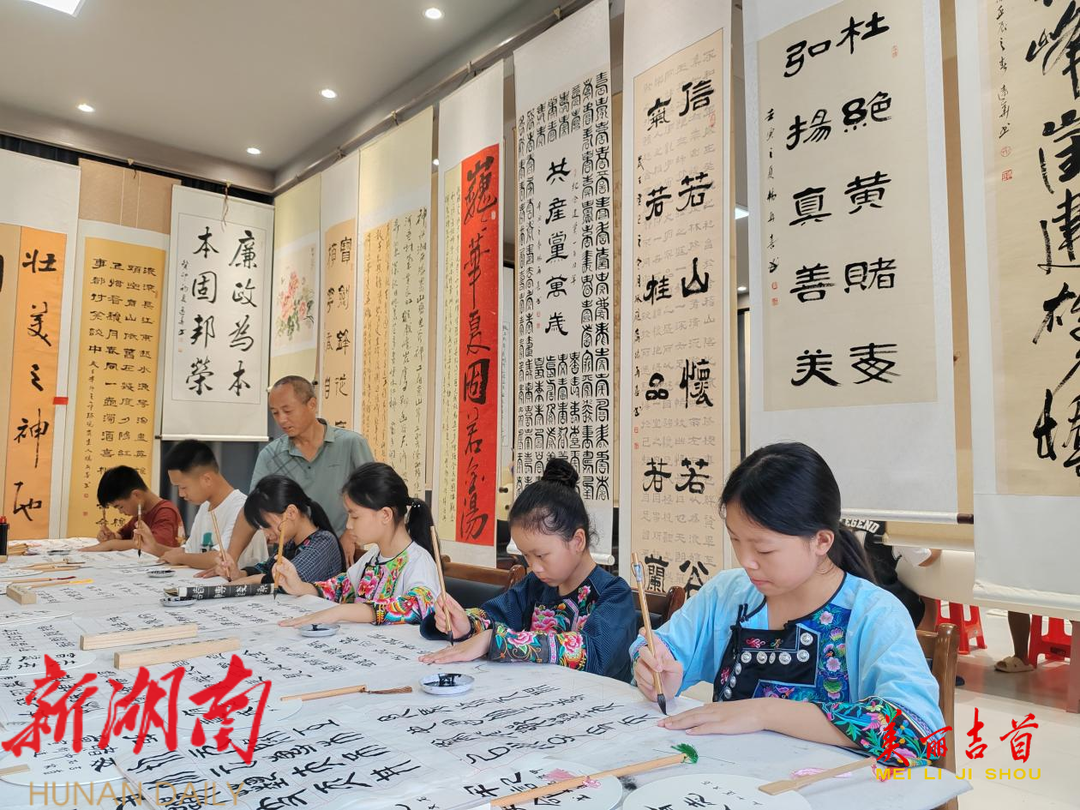暑假以来,吉首市石家冲街道组织辖区农民书法家在该街道新时代文明实践所免费教习书法。覃雨田摄