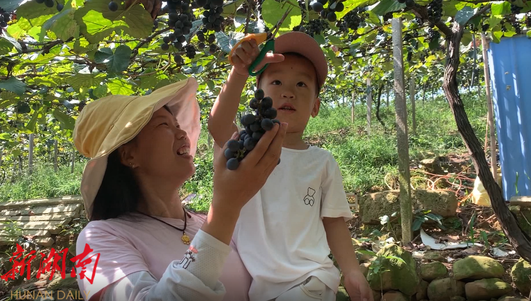 新江永客户端讯(记者 谢文彬 陈平成 ) 初秋时节,葡萄飘香。时下,江永县上江圩镇甘益村的高山刺葡萄迎来一年一度的采收季节,为抢抓上市时机,果农们加紧采摘、宣传、销售,确保葡萄尽早出货,卖出好价钱,同时还吸引不少市民自驾采摘。