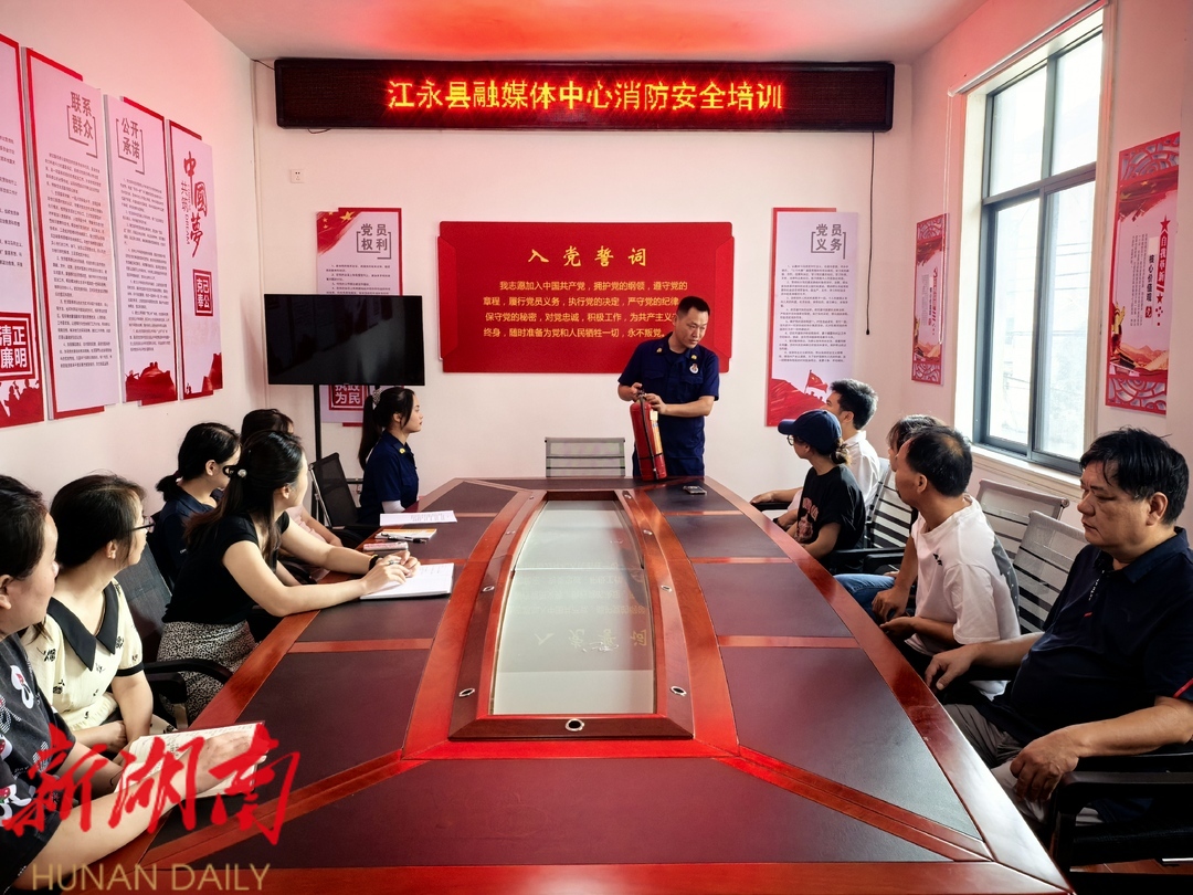 新江永客户端讯(通讯员 杨志霞) 近日,江永县消防救援大队宣传人员走进县融媒体开展全方位的消防安全培训,切实做好阶段性消防安全宣传工作,提升单位人员消防安全素质能力。