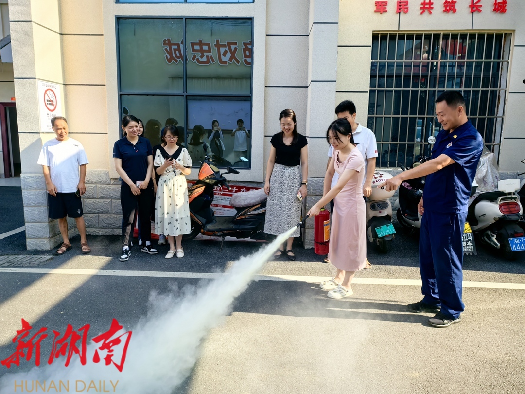 培训中,消防救援大队宣传人员首先从近期火灾事故案例讲起,强调消防安全的重要性,随后从燃烧的三要素入手,本质上对火灾形成的原因及相应的处理方式进行了介绍,接着结合江永县融媒体中心实际,依次从家庭防火常识、交通工具起火隐患、大型综合体火场逃生技巧等多个角度进行了细致生动的消防安全知识展示。同时,就灭火器、消防水带、消防水枪等消防器材进行了详细讲解和操作演示。在宣传人员的指导下,单位人员依次使用干粉灭火器进行灭火实操。