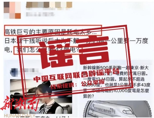 详情: 近期,高铁能耗问题引发关注。中国铁道科学研究院集团有限公司机车车辆研究所表示,“中国高铁动车组一公里耗一万度电”的说法偷换了概念,与事实不符。我国高铁现有的四个主力车型,根据其在京沪高铁(往返距离2636公里)达速350km/h运行条件下的能耗测试数据显示,其耗电量分别为:56931度、61861度、51364度、55490度,据此推算出平均每公里耗电量分别为:21.6度、23.5度、19.5度、21.1度。由此可见,网传“一公里耗一万度电”,其实是将高铁动车组按轮周功率计算得出的每小时耗电量,错误当成每公里耗电量,偷换了单位时间与单位里程的概念。此外,网传“日本新干线比中国高铁能耗低”这一说法毫无根据,与事实不符。中国高铁列车与日本新干线动车组平均每公里能耗相当。(来源:“中国铁路”微信公众号)