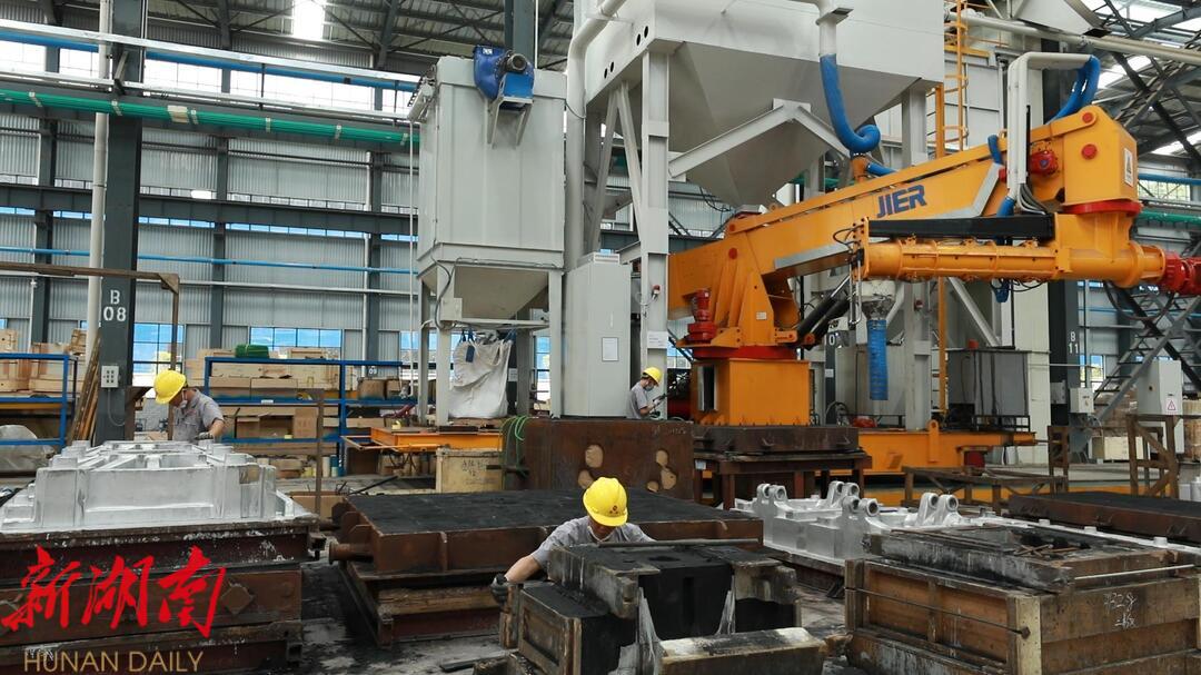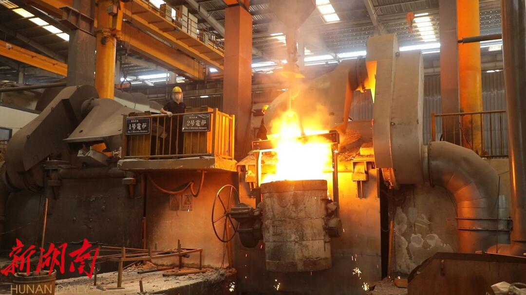 9月4日,记者来到湖南鑫泉科技有限公司看到,机器轰鸣,到处是红火的生产场景。眼前这台投资600多万元,引进的富士中频感应电炉正在进行熔炼浇注作业,主要是用于熔解废钢、铁水加热,调配成分材质。