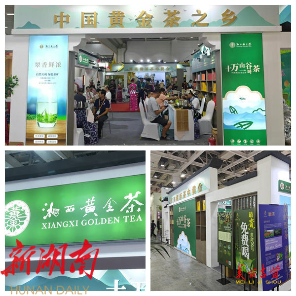 “十万山谷一叶茶”。 9月6日,吉首市湘西黄金茶以全新的形象、全新的口号以及具有民族特色文化的茶叶品牌logo亮相2024第十六届湖南茶业博览会,成为了本届茶博会上的一大亮点。市领导李成晚、陈江涛、向甫州等参加茶博会开幕式。