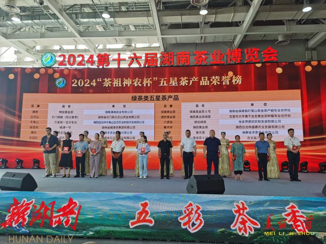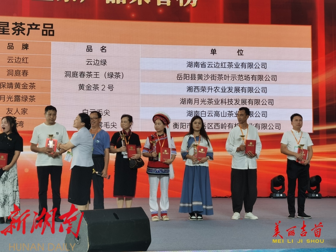 在“茶三十”颁奖典礼上,吉首“湘西黄金茶”再添新绩,吉首市荣获湖南茶叶新质生产力“十强先行县(市)”称号,湘西神秘谷茶业有限责任公司荣获新质生产力“十大领军企业”。在2024“茶祖神农杯”五星茶产品颁奖典礼中湘西神秘谷茶业有限责任公司的绿茶、红茶荣获五星茶产品,太平青干金龙黄金茶种植专业合作社的绿茶荣获五星茶产品,吉首市供销合作社联合社荣获优秀组织奖。