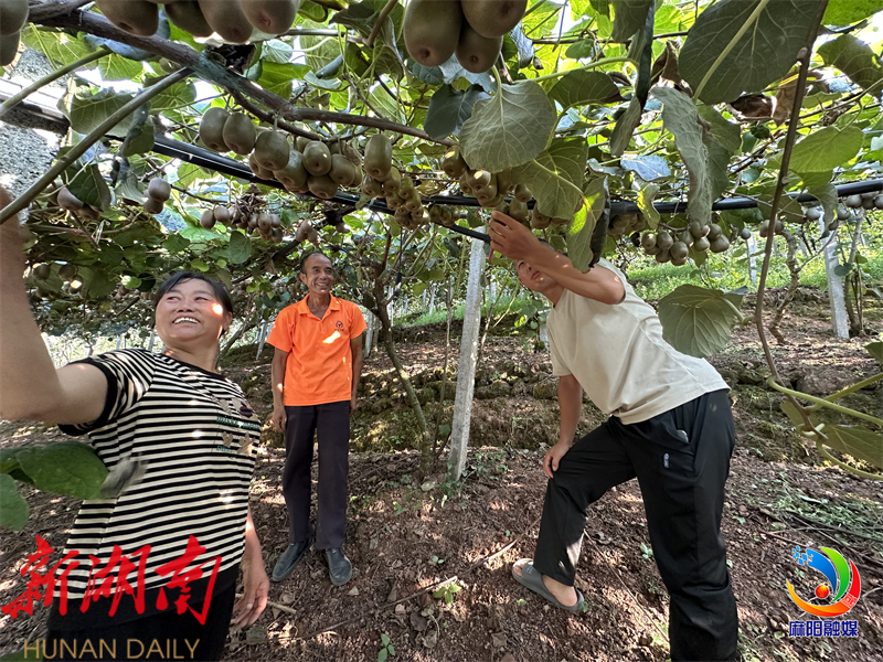 他一直在思考如何规避天气的影响。2023年上半年,麻阳县委特色农业产业办组织的一次农村致富能手外出学习 培训让他看到了希望。在凤凰县猕猴桃产业发展示范园,欧国田看到了别人建造水肥一体化避雨棚,猕猴桃生长状况极佳,心里便种下了这颗种子。紧接着,他又与其他的种植大户到成都考察避雨设施,产业发展视野和思维大大拓宽,更加促使他想给自己的棚子也安上避雨设施。由于这一设施造价极高,回去之后他又犹豫了很久。直到今年年初,他下定决心安装避雨设施。“猕猴桃要想收益好,这个避雨减灾的棚子我一定得装上!”抱着这种信念,他买来材料自己一点一点学习 安装,耗时近三个月才顺利完成。