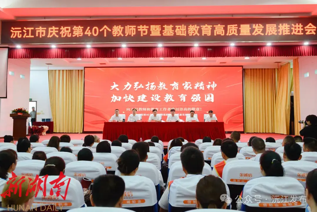 新沅江客户端9月10日讯 (记者 黄曦 李咏澎)9月9日,沅江市庆祝第40个教师节暨基础教育高质量发展推进会在市治大院二会议厅举行。市委书记杨智勇出席并讲话,市委副书记、市长罗必胜主持会议,市委副书记、统战部长张心镜宣读表彰通报,市领导 陈群力、李选才、汪交龙等出席会议。