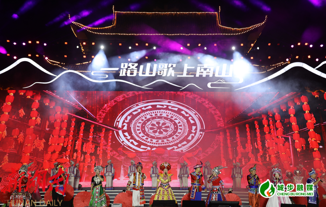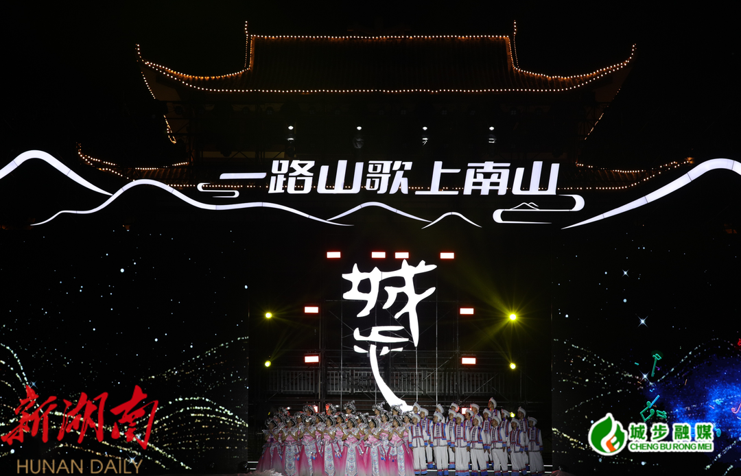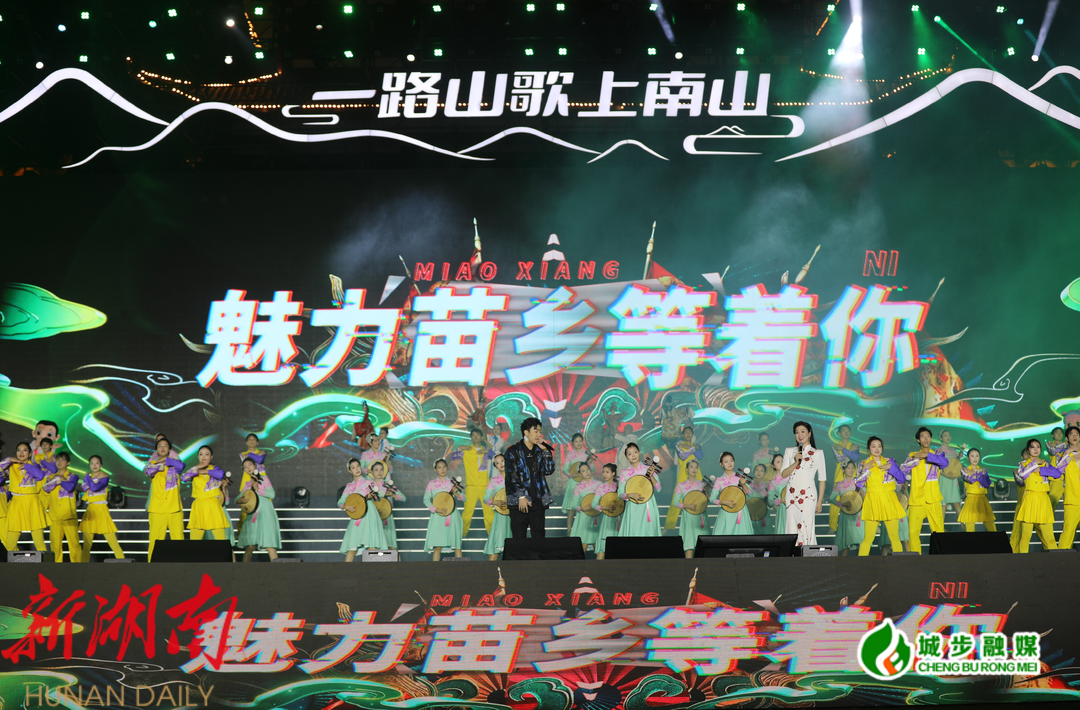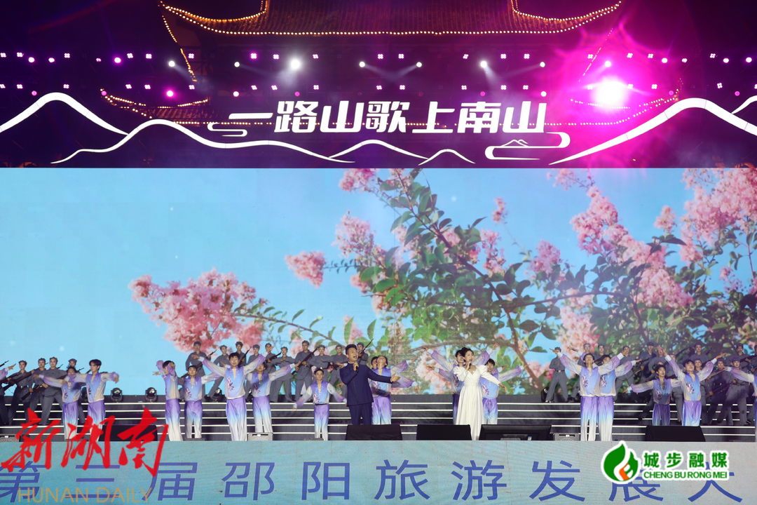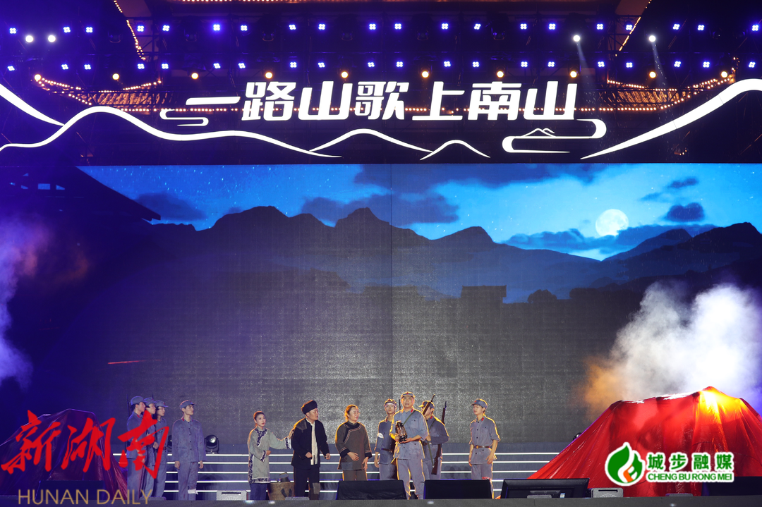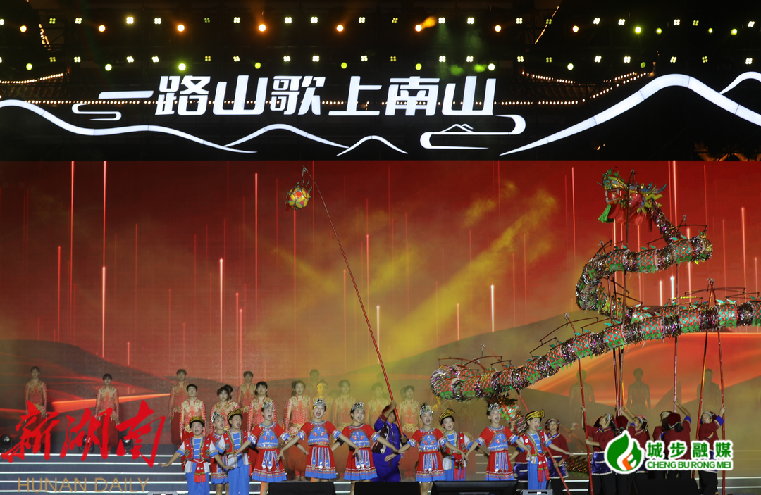 随后举行的文艺演出为大型民族歌舞剧,共分“苗刻·远古之歌”“将征·英雄之歌”“喊山·天籁之歌”“红传·革命之歌”“宝庆·邵阳之歌”“龙腾·时代之歌”六个篇章。演出以城步山歌“起源、发展、升华、传承、融合”的发展脉络为时间线,融入城步独有的非遗人文、历史石刻、红色记忆、自然景观等元素,开启了一场跨越千年的民族交融之旅,展现了苗乡各民族从“刀耕火种”到共建中国式现代化的历程,为观众带来了一场震撼心灵的视听盛宴。