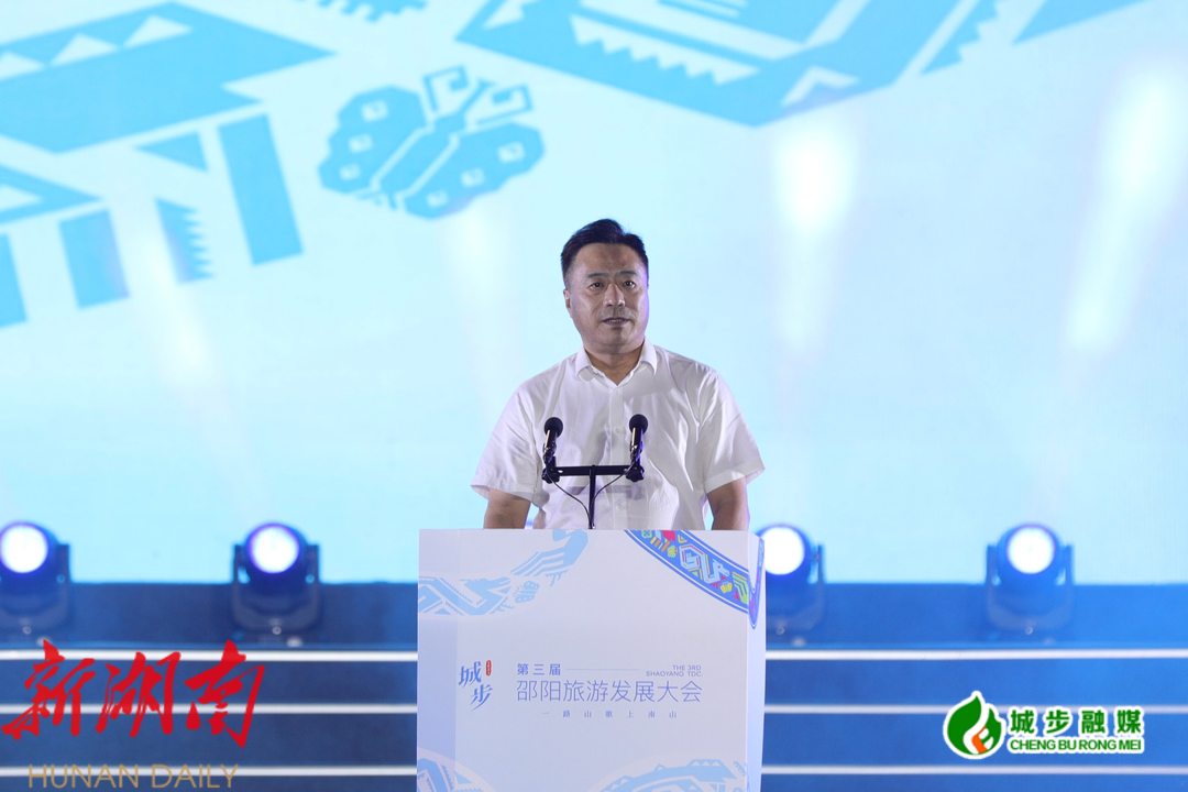 严华代表邵阳市委、市政府和全市人民向各方来宾表示欢迎,向长期以来关心支持邵阳发展的各界朋友表示感谢。他从“畅游邵阳品读人文之盛”“畅游邵阳饱览山水之秀”“畅游邵阳观赏民俗之奇”“畅游邵阳尽享味蕾之美”四个方面,介绍了邵阳的文化旅游资源优势和独特魅力,并诚挚邀请国内外游客相约邵阳、畅游邵阳,相遇诗和远方。