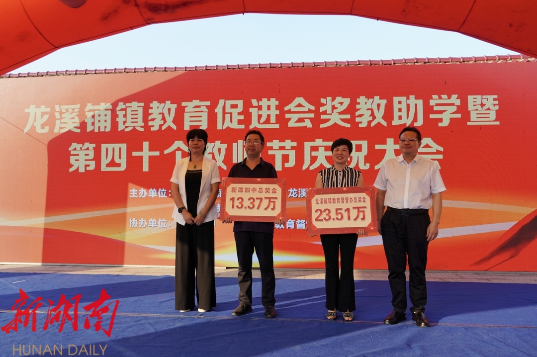 新新邵客户端9月10日讯 9月9日,新邵县龙溪铺镇教育促进会在新邵四中举行奖教助学暨第四十个教师节庆祝大会,对该镇532名优秀学生及教师进行表彰。县委副书记、统战部部长、县委教育工委书记王振波,副县长罗静出席并讲话。