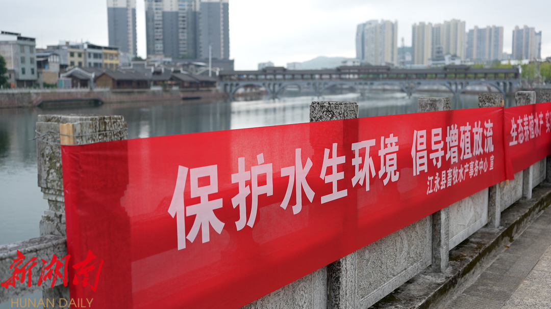 自2016年起,江永县在永明河、消江河等天然水域累计投放青,草,鲢,鳙等鱼种1800余万尾。近年来,江永积极践行“绿水青山就是金山银山”理念,多层次多形式开展水资源保护、湿地保护等宣传实践活动;渔政部门通过设立禁渔期、禁渔区,开展打击电鱼、炸鱼、毒鱼等渔业秩序专项治理行动,不断促进渔业资源恢复和水域生态环境改善。