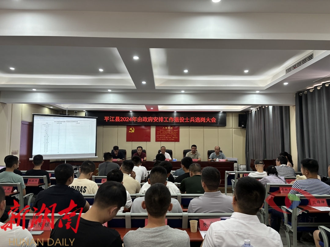 选岗结束后, 召开了平江县2024年由政府安排工作退役士兵安置工作交接会。会上, 宣读了《 2024年度由政府安排工作退役士兵安置到位情况及明确相关交接手续》,各接收单位相关负责人与退役士兵见面、沟通。