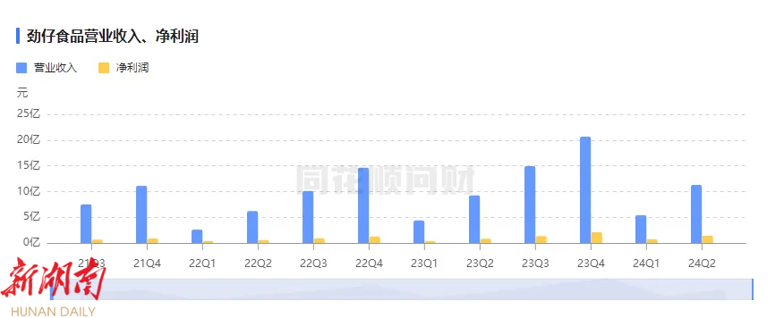近日,劲仔食品集团股份有限公司(以下简称劲仔食品)发布2024年半年报,公司实现营收11.3亿元,同比增长22.17%,净利润增长率更是高达72.41%,
