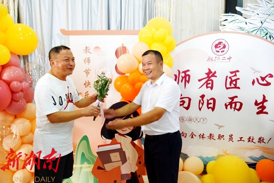 “有感动,有庆幸,有欢乐,从来没有经历过这样的教师节,我很幸福。”桃源县第二中学的一位女教师笑着这样说。“从教二十四年,第一次感受到了作为一名教师,从未有过的幸福感!感恩二中!”语文教师陈孟夫感慨道。9月10日,在这喜气祥和的日子里,桃源县第二中学 迎来了一个“别样”的教师节。