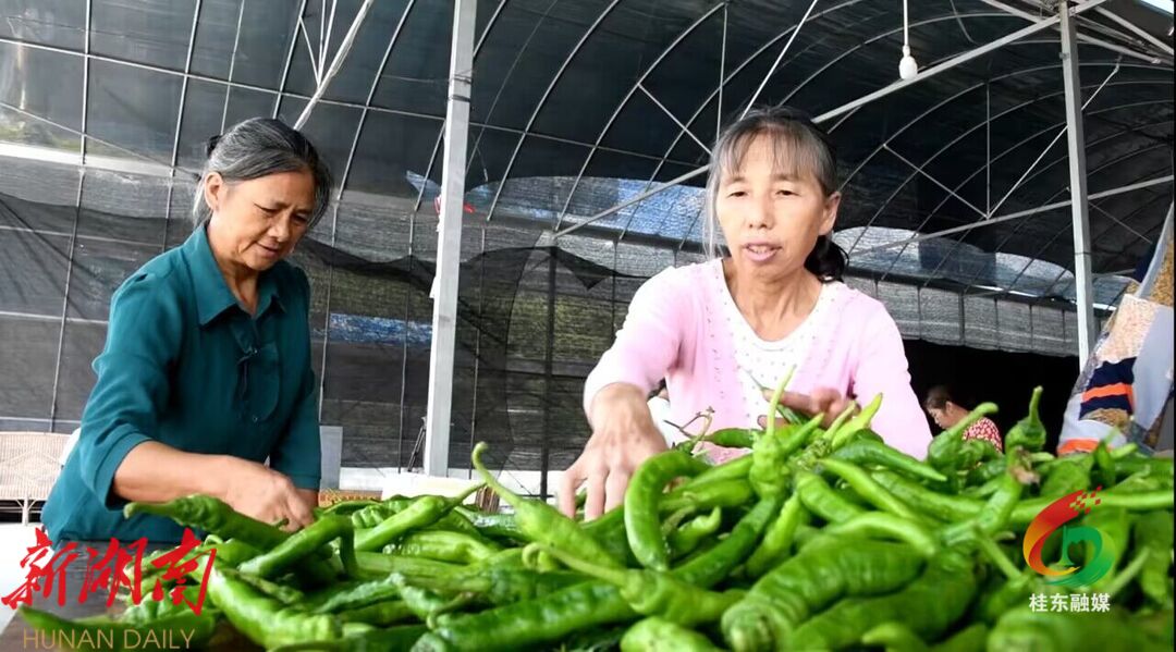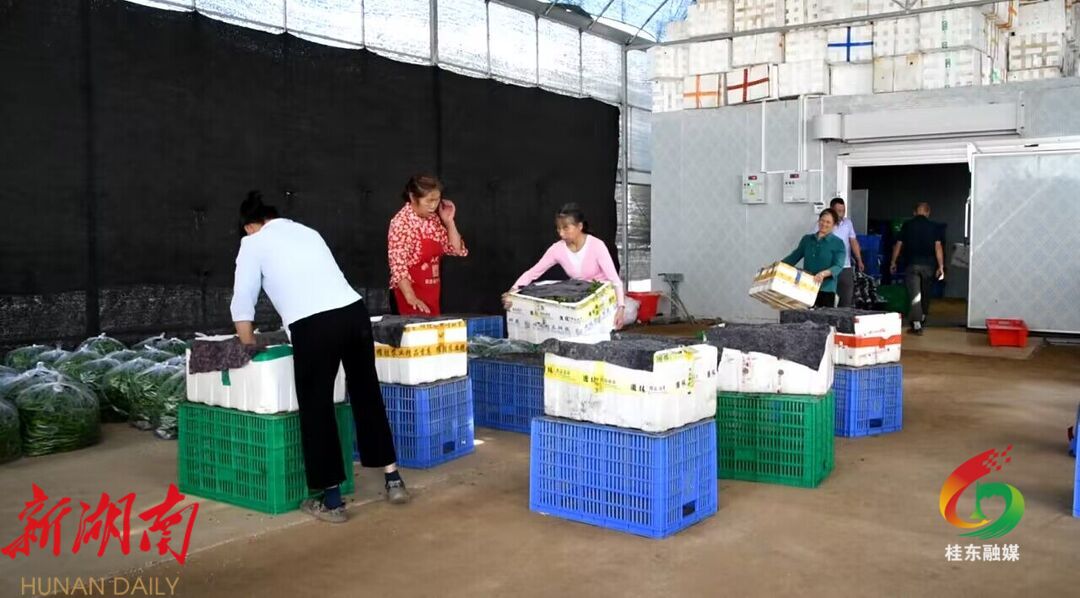 在寨前镇新桥村欣荣生态农业有限公司的打包车间,工作人员们忙碌的身影随处可见,一筐筐芹菜、一袋袋辣椒,经过去杂、挑选、清理、铺冰保鲜、包装等工序,被装上冷链物流车,运往衡阳、广东等地。