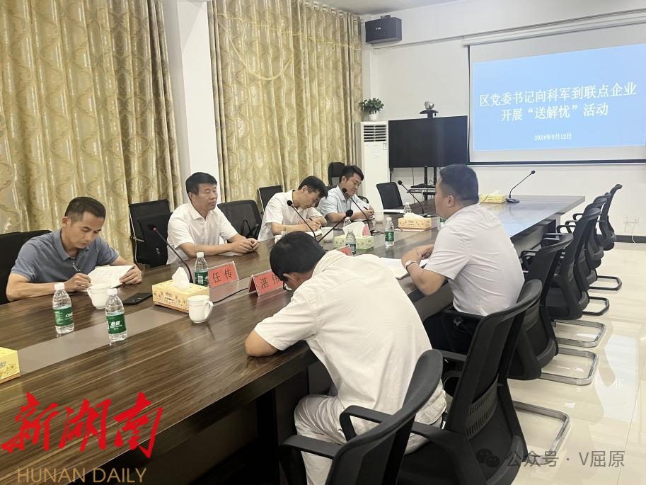湖南日报·新湖南客户端9月14日讯(通讯员 魏璐璇) 9月12日,区党委书记向科军走访联点企业开展“两重”“两新”送解优专项行动,详细解读“两重”“两新”等重大政策措施,现场倾听企业生产经营发展中的诉求,帮助企业纾困解难。区国资委、区科工局、区审计局主要负责人参加。