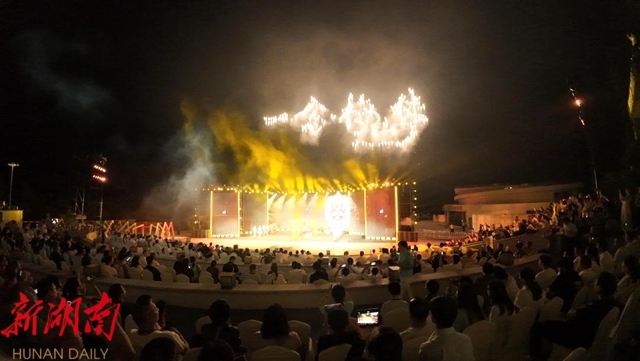 湖南日报·新湖南客户端9月14日讯(通讯员 游进 刘文 曾湘涛)9月12日晚,第二届“紫鹊界梯田对话世界”—农耕文化交流互鉴大会举行《一念梅山梦》剧目演出,为与会领导、专家嘉宾带来视觉与听觉的双重盛宴,展现梅山文化独特魅力。中国人民解放军中央军委纪委原副书记、少将段达球,娄底市委常委、市委宣传部部长莫小佳,新化县委书记李铁雄,县委副书记、县长彭韬,以及其他应邀领导、专家嘉宾观看演出。