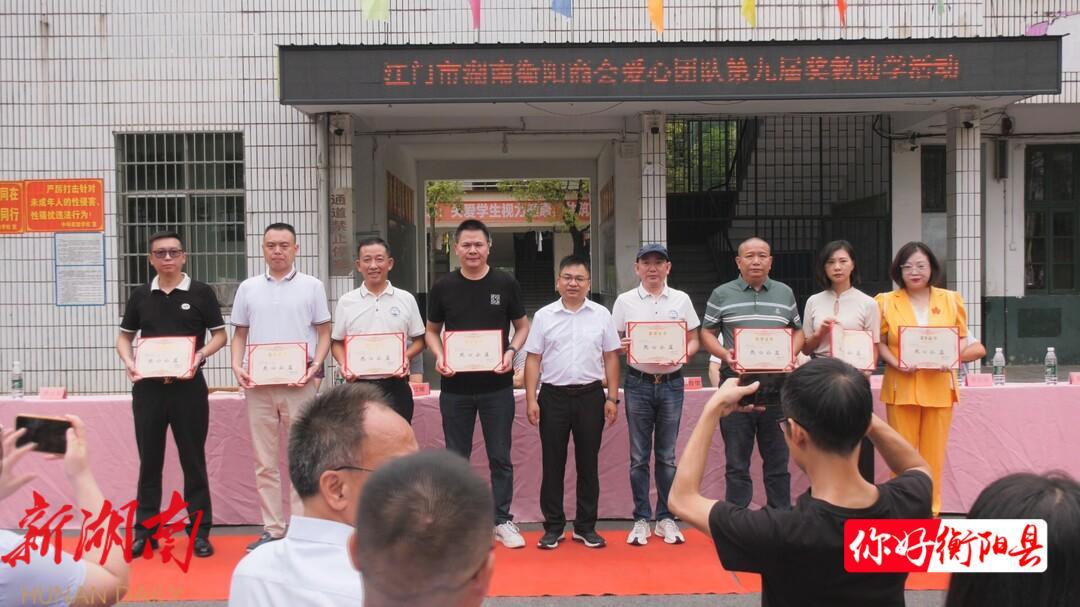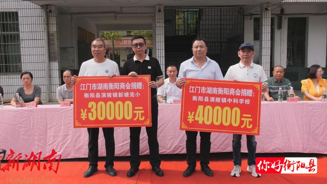 近日,江门市湖南衡阳商会爱心团队在演陂镇中科实验学校举行第九届奖教助学活动,为演陂镇中科实验学校、演陂镇新塘完小两所学校捐赠奖教助学资金7万元,用于改善办学条件和奖补师生。