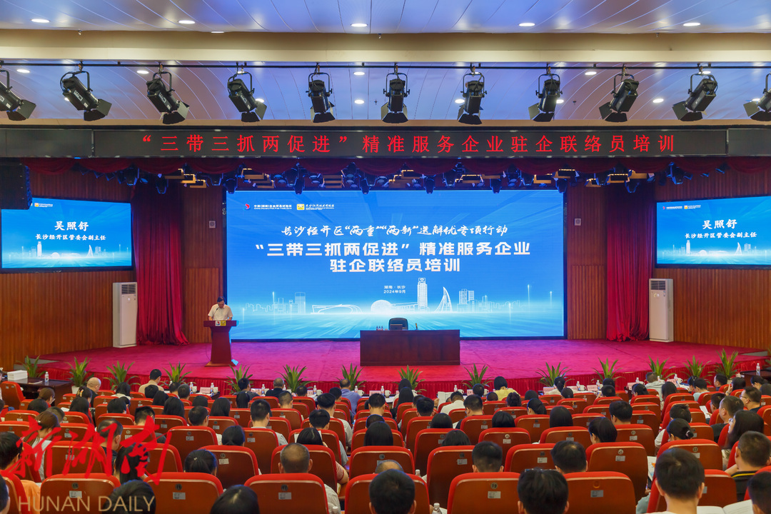 湖南日报·新湖南客户端9月14日讯(长沙经开区工作站记者 陈琪)9月14日下午,长沙经开区召开“三带三抓两促进”精准服务企业驻企联络员培训会。长沙经开区党工委委员、管委会副主任吴照舒出席会议并讲话。 各部门(单位)负责人及全体驻企联络员300余人参加。