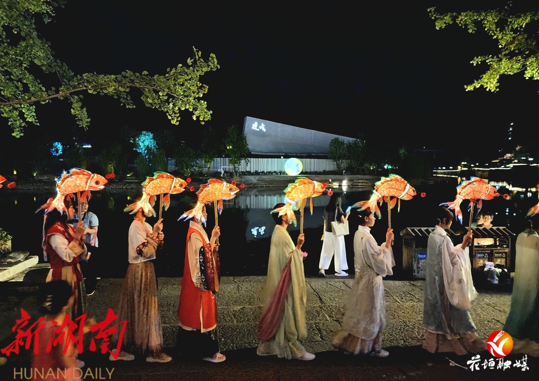 清风皓月,流光溢彩。9月17日晚,花垣县边城茶峒景区推出了系列丰富多彩的文旅活动,游客们逛灯会、赏民俗、放河灯,在浓郁的传统文化中品味中秋之美。