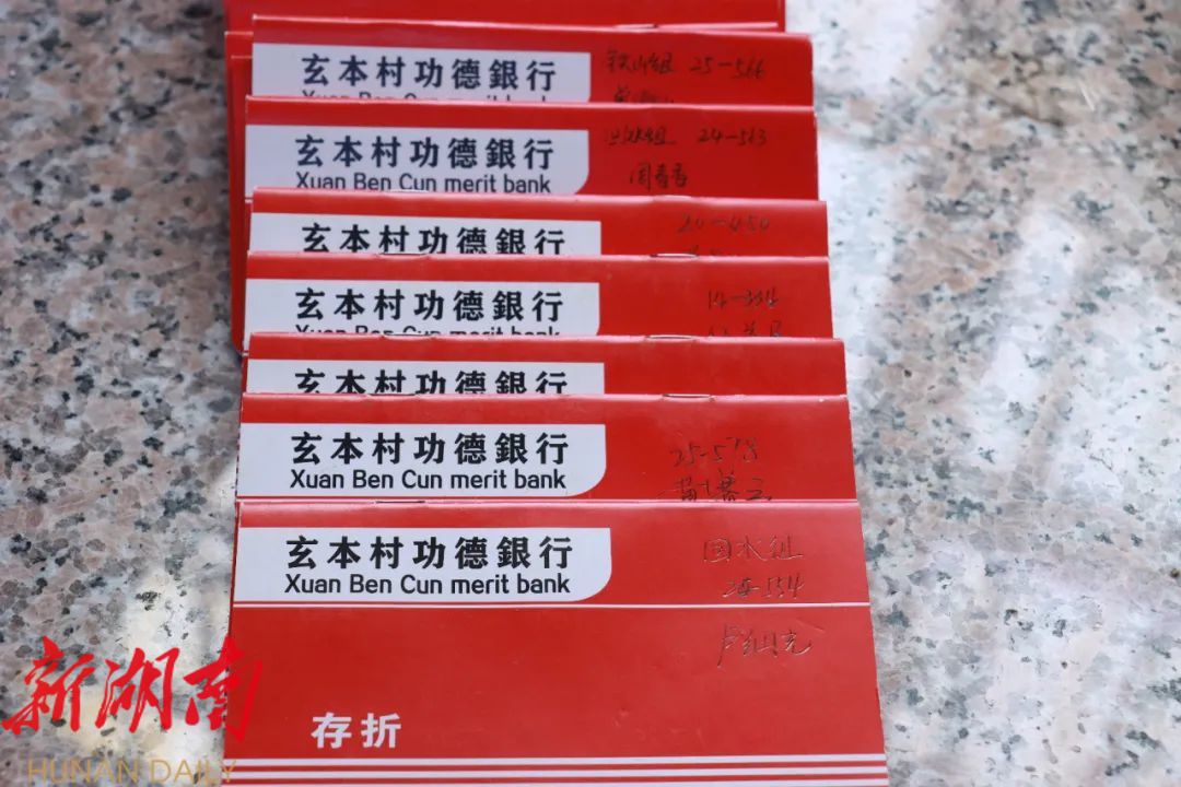 2019年3月,玄本村在新邵县率先成立“功德银行”,摸索出一条德泽善治之路。“功德银行”借用村民熟悉的银行存储形式,以户为单位建立基本账户,从法治、德治、自治等方面明确评分细则,将村民积德行善行为量化为分,并通过一月一评比,一季一兑付,村民的结余积分可兑换食盐、牙膏、洗涤用品、大米等实物,最终实现人人遵纪守法、邻里和睦、环境优美、生活幸福的目的。截至目前,玄本村“功德银行”储户达200余户,账户存入大大小小的好人好事达千余次,“功德银行”共筹集资金达30余万元。“功德银行”不仅仅打造了乡村治理的新样本,更成为了正能量的“储蓄罐”。