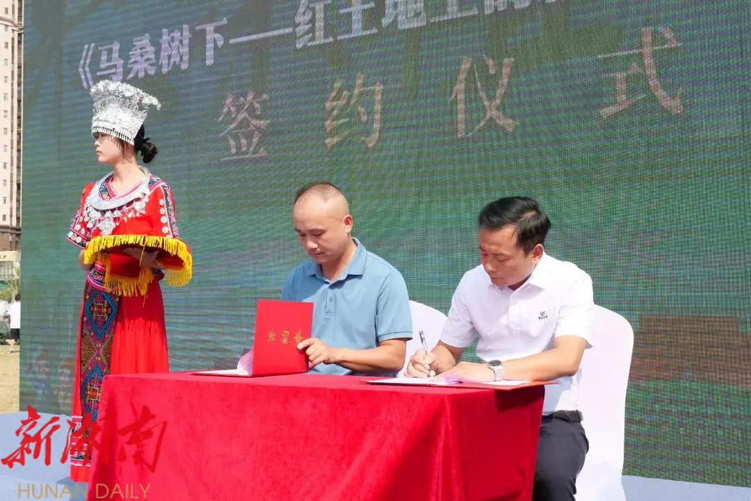 湖南日报·新湖南客户端 9月21日讯 (记者 庄丹丹)“来桑植哟来桑植哟,张家界的山水桑植的歌......”9月21日,由中共桑植县委宣传部、县文旅广体局、县文联等单位主办,张家界市融媒体中心(集团)承办的“把桑植带回家——‘来桑植哟’文创产品暨《马桑树下——红土地上的新故事》”首发会在桑植县行政中心广场隆重举行。《人民日报》大地副刊主编张健,《中国作家》纪实版副主任汪雪涛,湖南省作家协会党组副书记、省报告文学学会会长游和平,毛泽东文学院副院长刘哲,湖南理工学院原院长、省评论家协会名誉主席余三定,岳阳市公路建设和养护中心党组书记、主任赵启鸿,《马桑树下——红土地上的新故事》作者方欣来等嘉宾参加活动。县委副书记、县长梁高武,县委常委、宣传部部长王茂蓉出席活动。