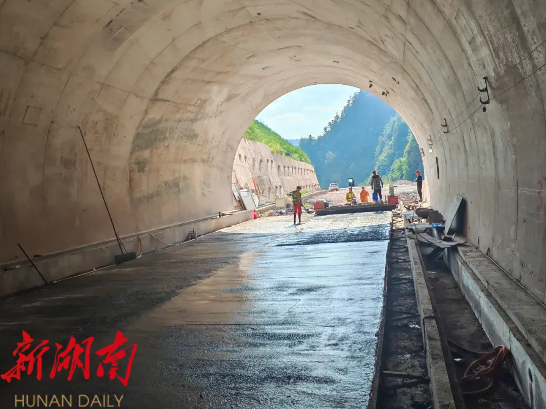 据瑞中公路项目技术负责人温磊鹏介绍,全体建设者正以饱满的热情和昂扬的斗志,全力以赴推进施工进度。“预计在10月1日之前,将圆满完成项目总进度的90%,届时隧道路面工程将全线拉通,可供小轿车从桑植县前往武陵源杨家界大道。”温磊鹏说道。