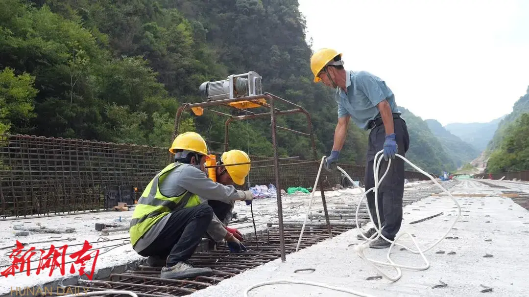 湖南日报·新湖南客户端 9月22日讯(记者 林雨响 张芬)9月22日,在瑞中公路项目洪沙溪大桥施工现场,全体建设者正紧锣密鼓地推进施工,这座全长726米的雄伟建筑,正逐渐展现出其壮观的风貌。