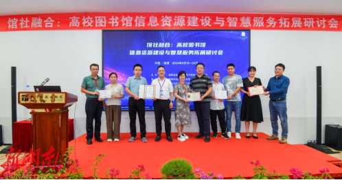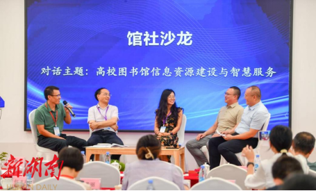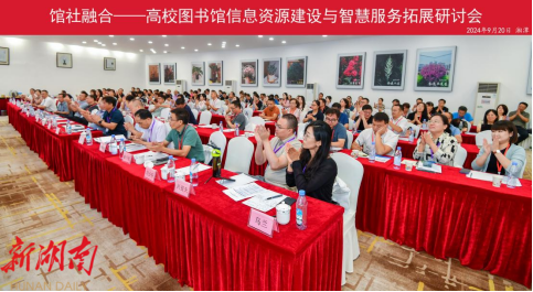 雨湖新闻网讯 (通讯员 黄华 胡捷)为增强知识传递与利用效率,提升高校图书馆资源建设质量和管理服务能力、推动图书馆高质量发展,9月20日,由湖南省高等学校图书情报工作委员会主办,湖南科技大学图书馆承办,北京万物可知技术有限公司提供技术支持的“馆社融合——高校图书馆信息资源建设与智慧服务拓展研讨会”在湖南省湘潭市盘龙大观园举行。全国各大高校图书馆、出版社及相关科技企业150余位专家学者,齐聚一堂,共谋高校图书馆的现代化建设与高质量发展。湖南科技大学图书馆党总支书记刘奇玉、湖南省高校图书情报工作委员会主任郑章飞先后主持会议。