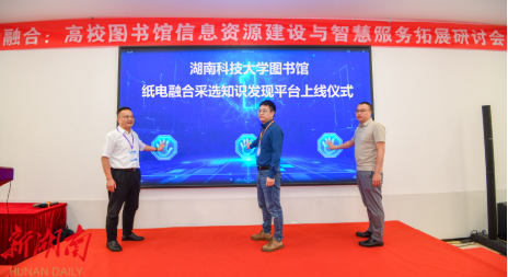 湖南科技大学图书馆—纸电融合采选知识发现平台上线仪式。