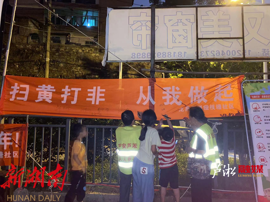 居民在 “ 扫黄打非 ” 宣传横幅上签名