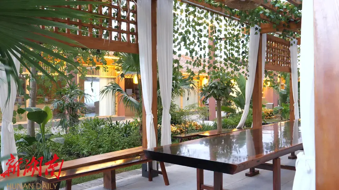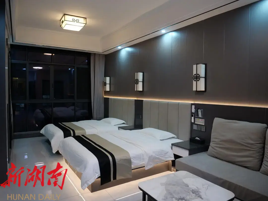 洪家关白族乡红色一条街是一条历史悠久的街道,距离贺龙故居等景区200多米,周围遍布着各种美食店和购物场所,乡政府对街道路面、道路绿化、房屋外观等方面进行提质改造后,街道环境大大提升,让这条街更加古色古香。“这棵皂荚树已经100多年了,当年贺龙元帅带着父老乡亲们出发长征,就是从这条街出去的,留守在家里的妇女儿童们,每天就在这颗皂荚树下等待亲人们凯旋回家。”今年46岁的韦先炼正在民宿院子里和游客聊天,给他们讲述贺龙元帅带着父老乡亲闹革命、率军长征等红色故事。“我之前在市里从事旅游相关的工作,看到家附近的街道建设得这么好,我就萌生了回家开民宿的想法,这里离景区近,节假日游客入住率都挺高的,最近快旅发会了,房间更是每天爆满,父母年纪大了,在家工作的同时也能照顾到他们。”韦先炼介绍道。入住的游客也表示,老板很热情,一入住就能感受到老板对民房进行了精心布置,房间内的家具和装饰都很温馨,有回家的感觉。
