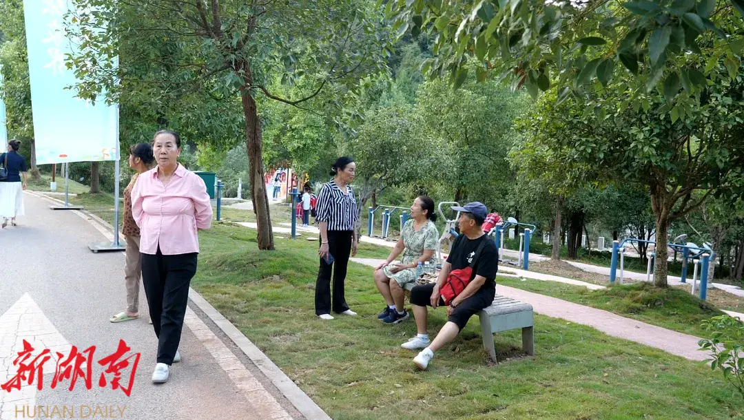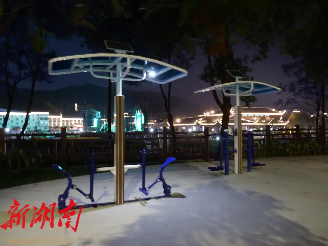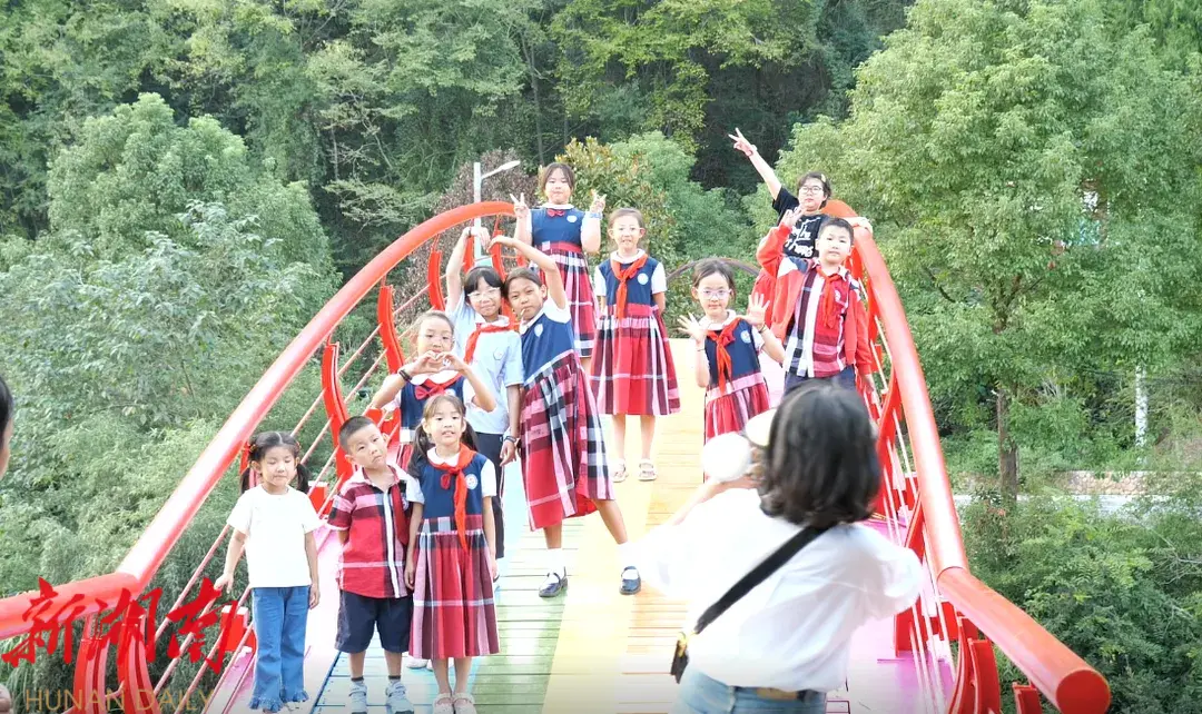 长长的生态河堤,集生态、公园、体育、休闲于一体,不仅为居民游客提供了休闲健身的好去处,也通过生态河堤将贺龙文物保护利用中心、贺龙纪念馆、贺龙故居、桑植烈士陵园、贺龙桥等周边的景区串珠连线,让历史与现代、人文与自然完美融合。“这里的公园好漂亮,公园里有大树、跷跷板、彩虹桥,附近还有小河流,像在森林里一样。”在主会场刚彩排完节目的一年级学生王俊凯和他的同学们在老师的带领下正在附近公园休息,公园舒适优美的环境让孩子们非常开心。