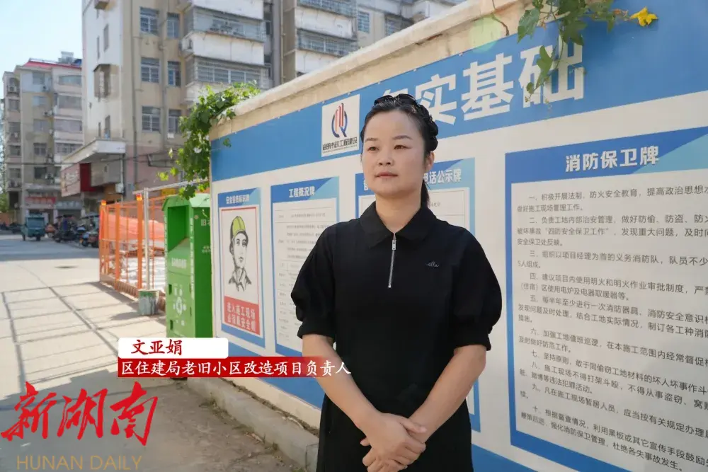 区住建局老旧小区改造项目负责人 文亚娟:西洞庭管理区高质量发展暨经济形势分析会明确将城镇更新行动纳入实施“三大战略” 开展“三大行动” 中,此次老旧小区改造正是回应群众关切,推进城镇更新行动的具体实施,我们将积极与施工单位对接,通过(开展)扎实有效的工作,从“面子”到“里子”,确保老旧小区改造项目顺利完工。