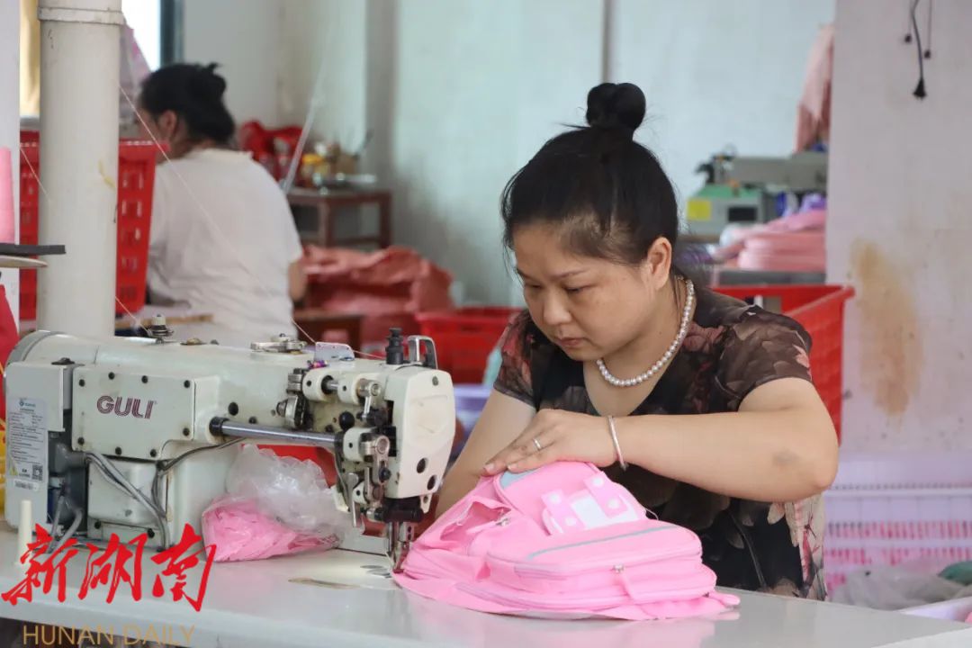 “我已经在手袋厂工作快两年了,虽然比起外面来工资确实低一点,但胜在离家近,方便照顾老人、孩子,让老公可以安心在外工作。”在富莎手袋厂,村民彭惠英正和同事们赶制书包。