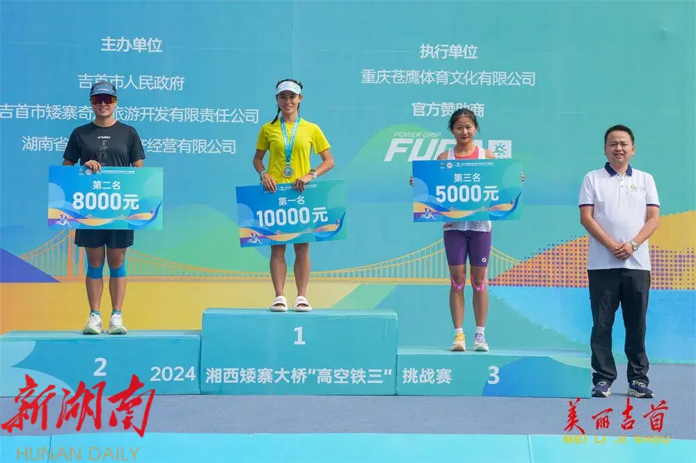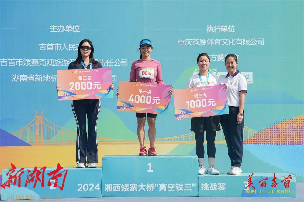 经过激烈角逐,叶朝阳、杨艳、郭向柯、张丽凤分别夺得A组高空铁三男子、A组高空铁三女子、B组趣味高空铁三男子、B组趣味高空铁三女子第一名。