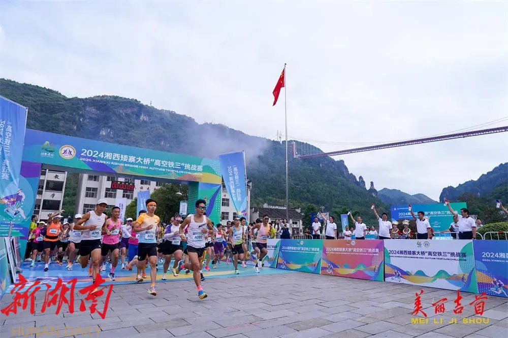 9月22日上午,2024湘西矮寨大桥“高空铁三”挑战赛燃情开赛,首次将越野跑与高空娱乐项目相结合,来自全国各地的300名参赛选手,在万丈绝壁和“云端天桥”之间挑战生命极限。