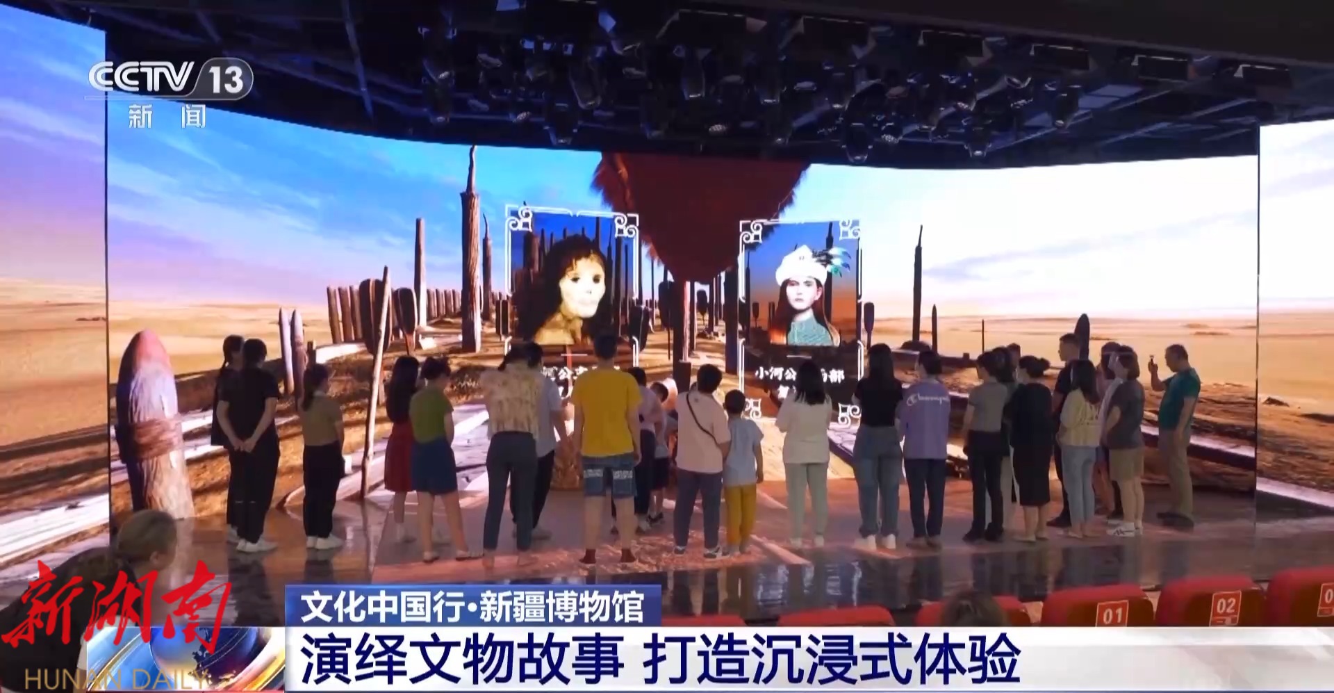 站在新疆博物馆四楼数字化体验厅,灯光熄灭,落地大屏幕亮起,4000年前的小河墓地出现在眼前。“数字博物馆沉浸式体验项目”借助虚拟现实、体感交互等,全景还原了楼兰古城、小河墓地、克孜尔石窟等,让观众“身临其境”。