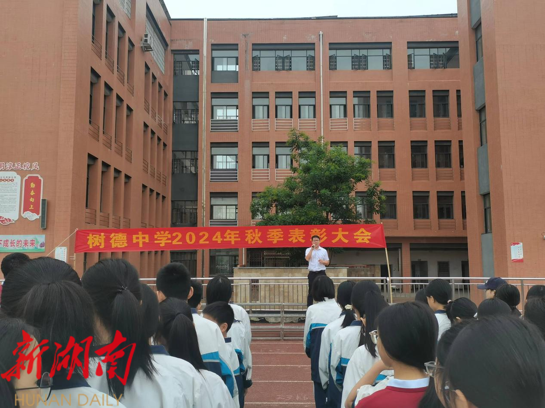 新湖南客户端9月25日讯(通讯员 陈艳婷 王海斌)9月23日上午,东安县树德中学在田径场举行2024秋季表彰大会。全体师生参加。