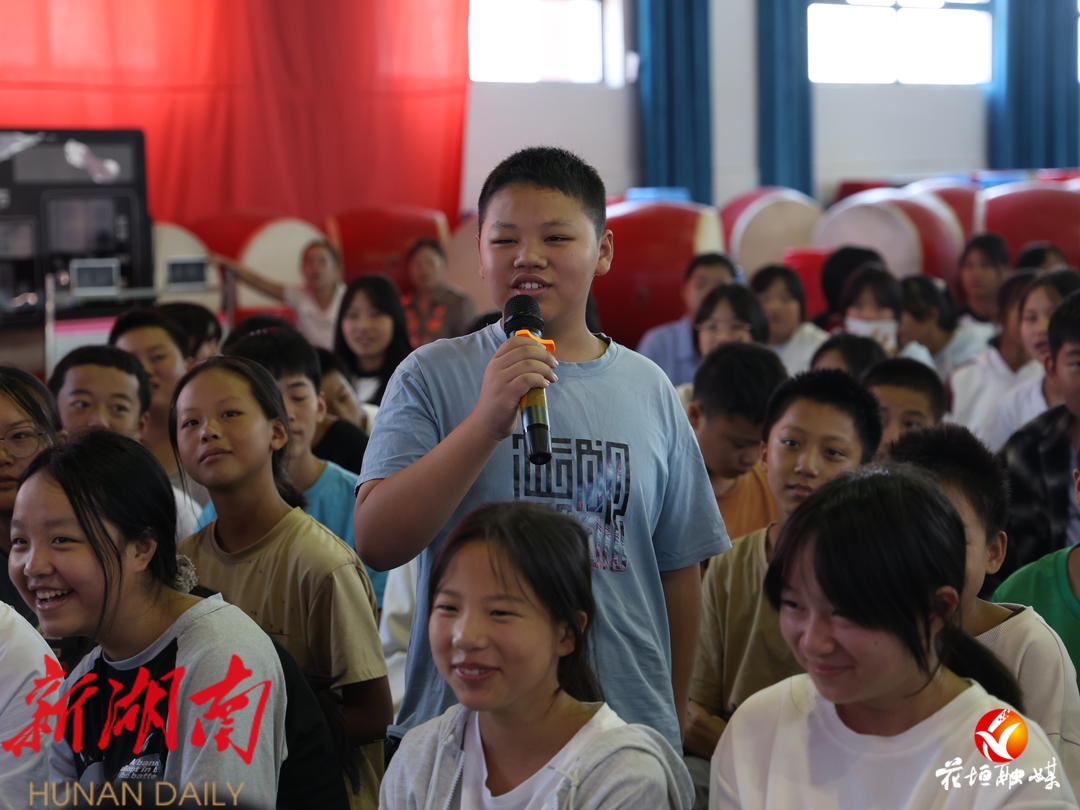 宣讲现场,来自花垣共青团“80、90、00”青年讲师团成员华亚雪,湖南农业大学研究生支教队成员分别围绕宣传贯彻党的二十届三中全会精神和青春分享会作主题宣讲,结合理论学习、自身理解、工作实际,聚焦小切口、展现大主题,深入浅出地为大家解读党的二十届三中全会精神。在互动交流环节,学生纷纷举手抢答提问,现场气氛热烈且融洽。