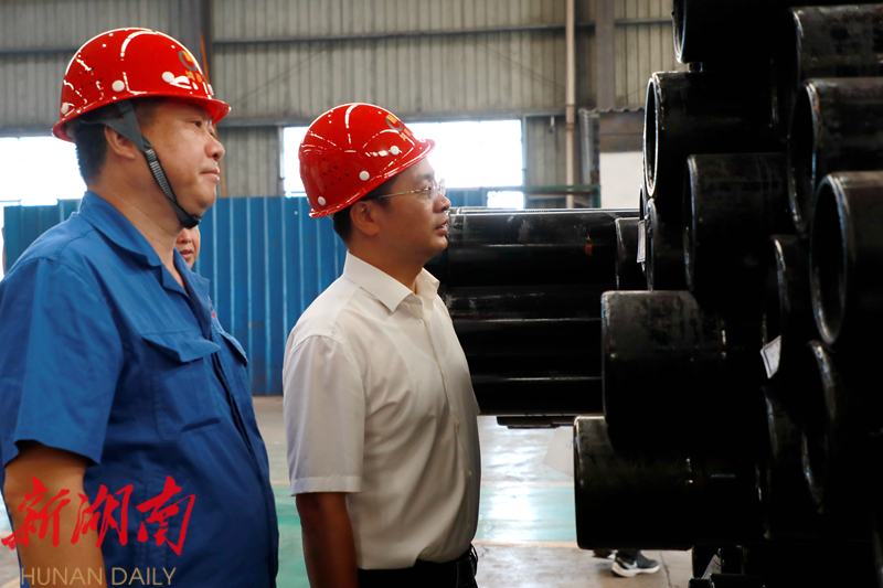 来到衡阳鸿菱石油管材有限责任公司、天津中鼎石油钻具制造有限公司所在厂房,在炽热的车间中,工人们在机器的轰鸣声中相互配合,一条条钢管在他们的手中逐渐成形。曾梦龙实地察看了产品生产线、生产环境等,详细了解企业现有技术开发、产品生产、销售渠道等情况,并表示,企业要充分发挥自身优势,加强产品研发,进一步推动钢管及深加工产业链延链补链强链。同时叮嘱企业要定期开展安全检查,及时排除隐患,坚决遏制各类安全生产事故发生,为企业加快发展营造良好环境。