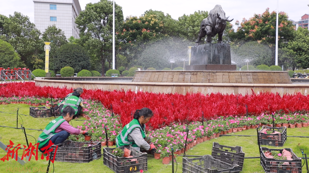 江永:花香四溢迎国庆 近30万盆鲜花点亮城市之美