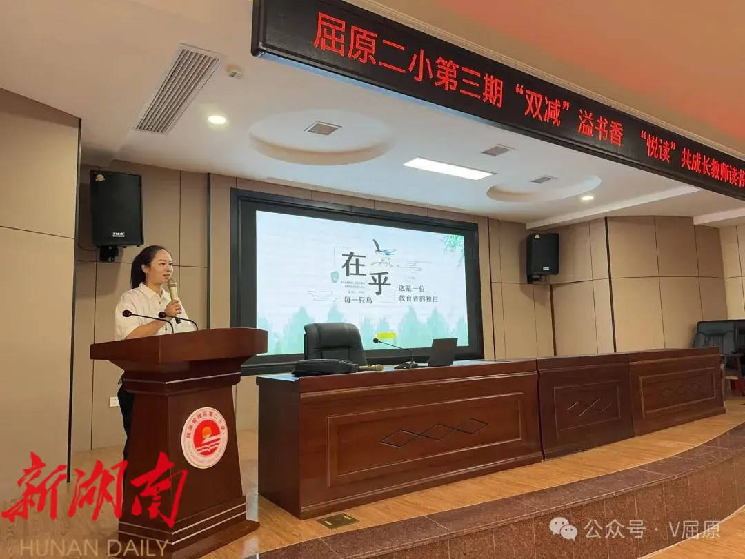 湖南日报·新湖南客户端9月27日讯(通讯员 吴丹 郑叶) 一处书香地,满院读书人。为进一步落实“双减”政策,营造浓郁的书香校园氛围,推动学校文化建设,引导教师关注教育领域的新理念、新思想,增强教育创新意识,促进教师之间的交流与学习,提升教师的阅读素养,激发教师的阅读兴趣,9月26日,屈原二小举行了第三期教师读书分享活动。