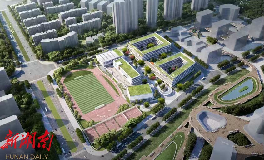 湖南师范大学附属三一云谷实验学校项目鸟瞰效果图