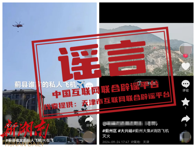 真相: 近日,网传“消防飞机灭火”“蓟县谁家的私人飞机”等视频,引发关注。经当地网信部门核实,网传信息为谣言。真实情况为:天津市蓟州区于2024年9月20日至9月29日不定期在渔阳镇大兴峪村森林防火综合演练现场一号场地(山口无植被处)进行“砺剑-2024”演练点火及装置试燃工作。(来源:@天津辟谣)