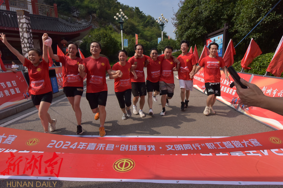 为庆祝中华人民共和国成立75周年,全面贯彻落实党的二十届三中全会精神,进一步丰富广大职工群众的文化体育生活,助力创建全国县级文明城市提名城市,9月28日上午,由嘉禾县总工会举办的干部职工智跑大赛在嘉禾县九老峰开赛。
