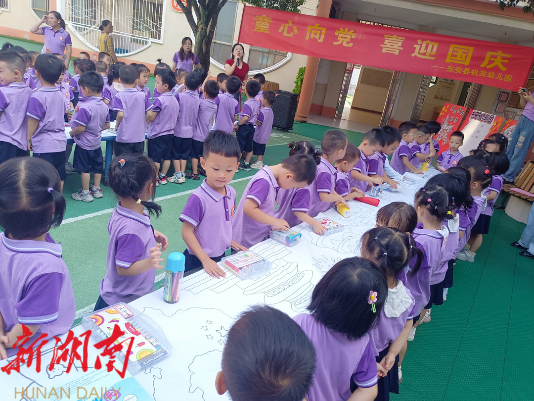 新湖南客户端9月30日讯(通讯员 冯栩瑜 刘丽芳)为增强民族自豪感,激发幼儿的爱国主义情怀,9月29日至30日,东安县机关幼儿园开展“童心向党 喜迎国庆”系列主题活动,庆祝中华人民共和国成立75周年。