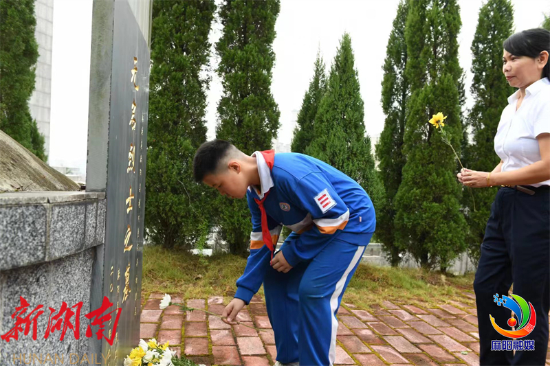 默哀结束后,麻阳第二锦江小学的少先队员们献唱了《我们是共产主义接班人》,他们用稚嫩而坚定的声音向烈士致敬,传承和发扬红色革命精神。