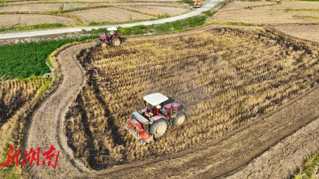 9 月 29 日,新邵县巨口铺镇刘家村的油菜种植现场,油菜一体机在田间穿梭,一次性完成旋耕、分厢、开沟、播种、施肥、覆土等多道工序,大大提高了耕种效率。这种机械化耕种技术是新邵县在油菜生产中推广的关键技术之一,不仅节省了人力,而且保证了耕种的均匀性和密度要求,为油菜的高产打下了坚实基础。